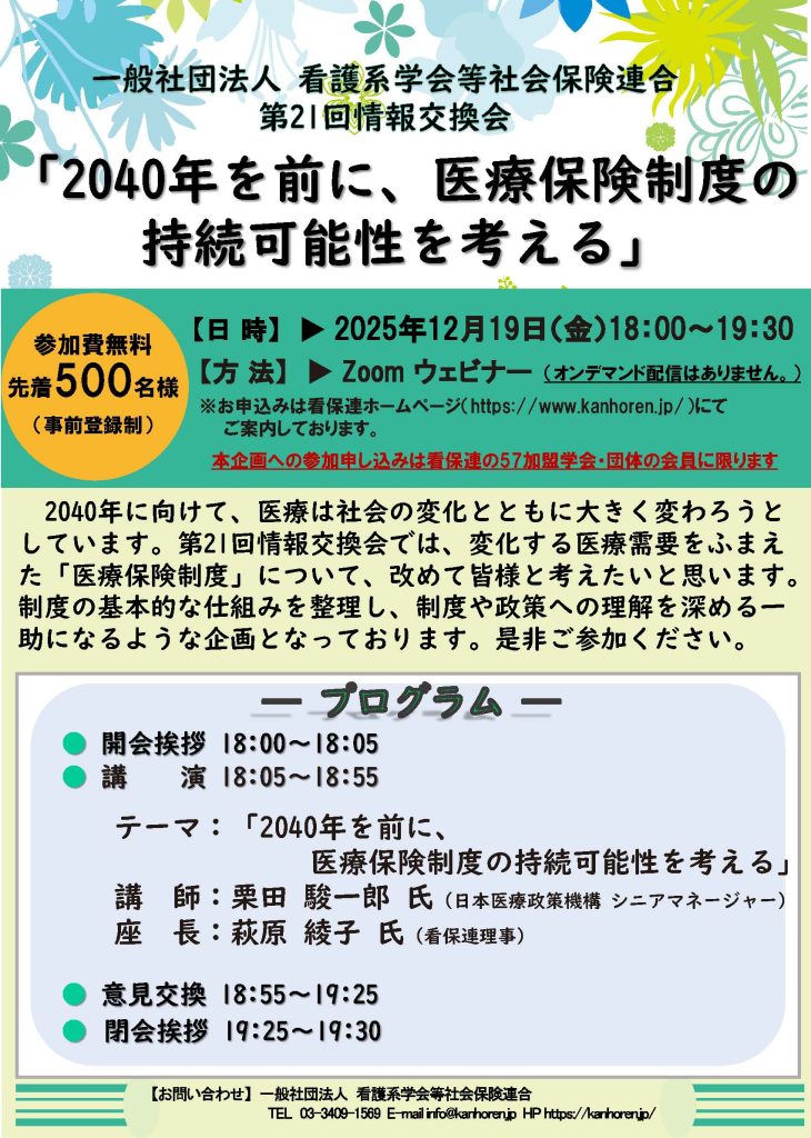 ※本企画への参加申し込みは看保連の57加盟学会・団体の会員様に限ります。